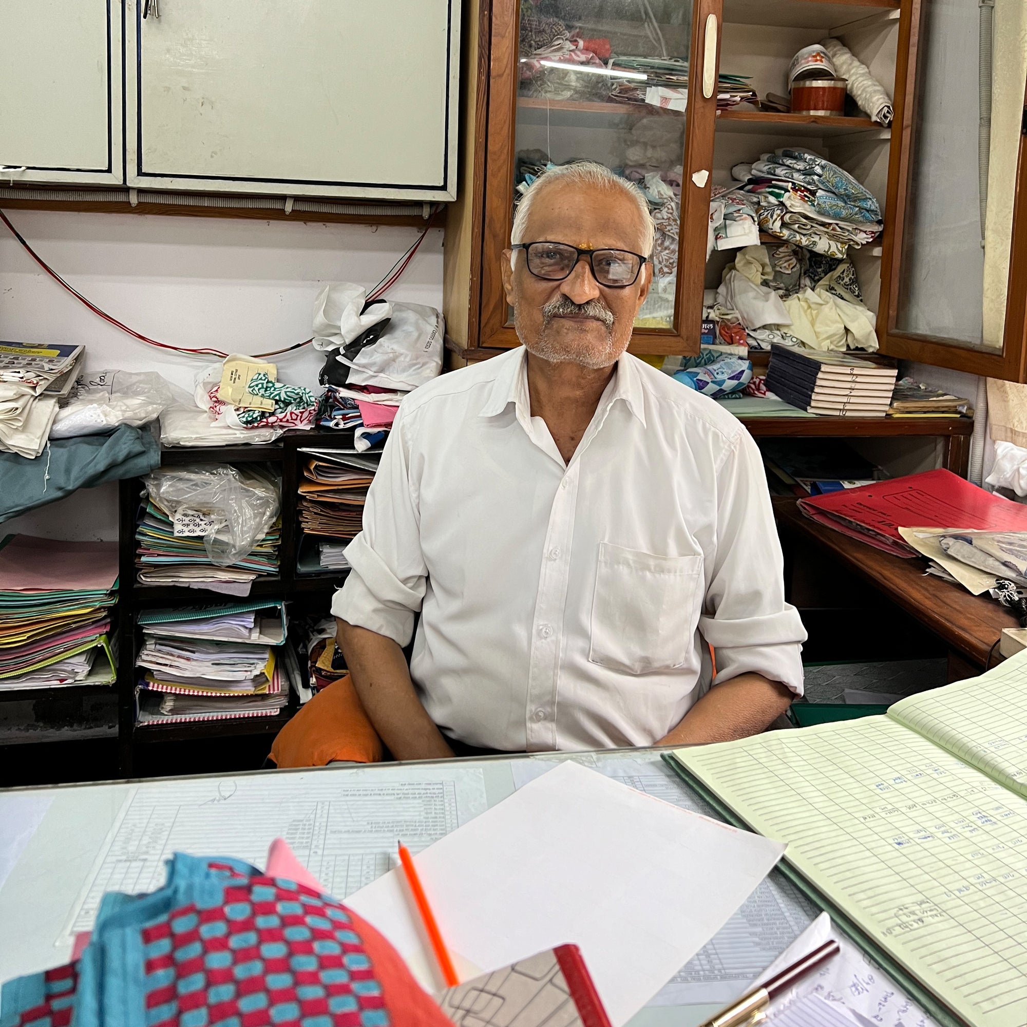 I, Sateesh Chand Saxena, have been associated with Ratan since 1977. Initially, I joined to gain some experience while pursuing my LLB, but the supportive environment and encouragement from the brand made me reconsider. I decided to leave my law studies and commit fully to Ratan. It's been 48 years now, and today, I'm the Printing Manager. What started with just a few printers has grown into a team of over 50. My goal is to foster a positive and healthy work environment for our craftsmen and ensure that each product is crafted with meticulous care.
