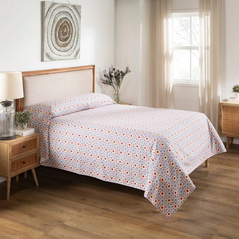 Add a pop of pattern to your bedroom with our Moroccan Tile Cotton Bedcover. Inspired by classic tilework motifs, this handcrafted bedcover features a vibrant all-over print in shades of red, blue, and mustard—bringing symmetry, color, and charm to your space.