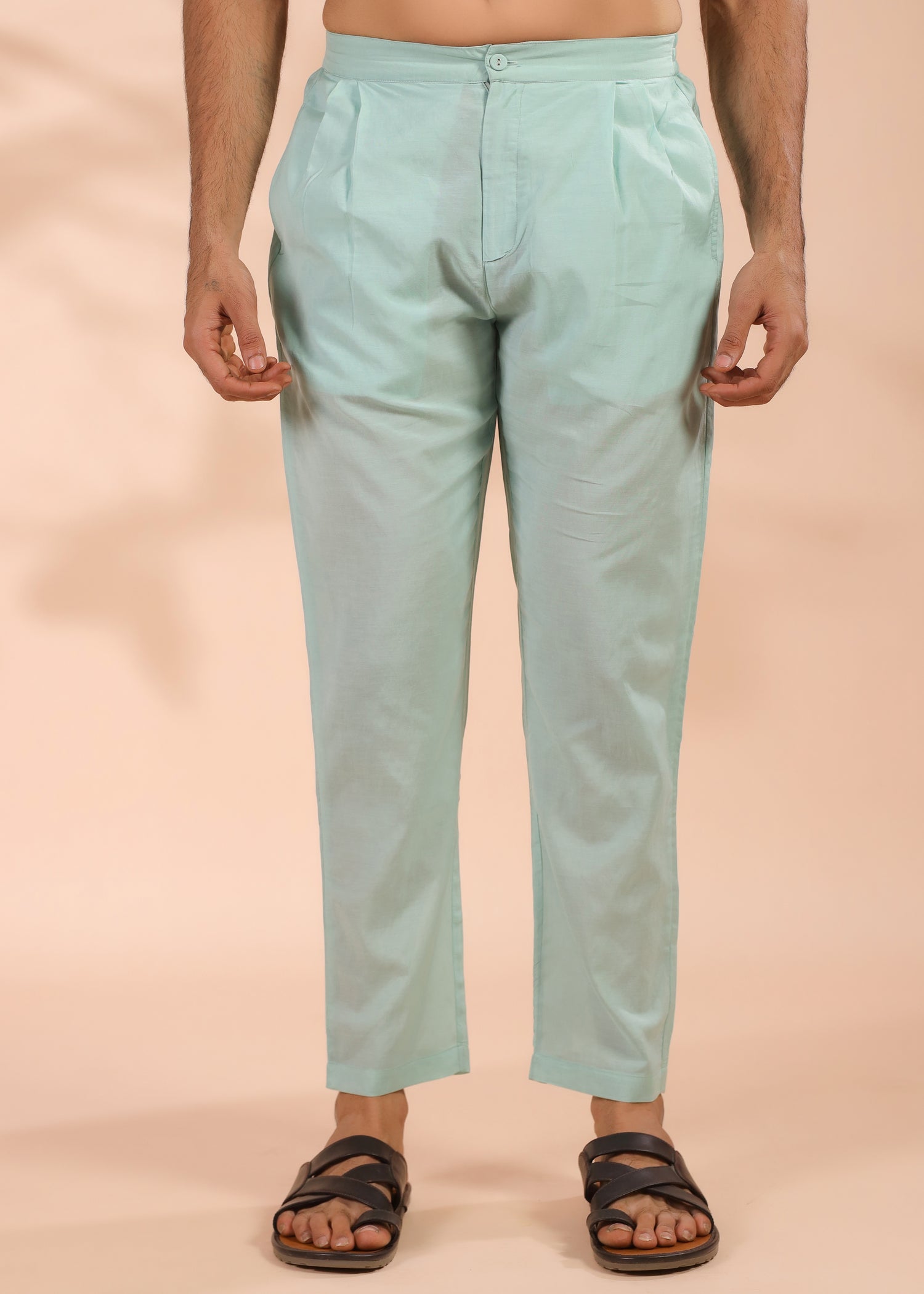 Refresh your ethnic wardrobe with these men’s mint green viscose straight-fit pants from Ratan Jaipur. The soft pastel shade adds a contemporary and calming touch, while the breathable viscose fabric ensures comfort and ease throughout the day. Perfect for pairing with light-hued kurtas, shirts, or summer-friendly ethnic tops, these straight-fit viscose pants offer a cool, elegant, and effortless look for festive occasions, casual outings, or warm-weather styling.