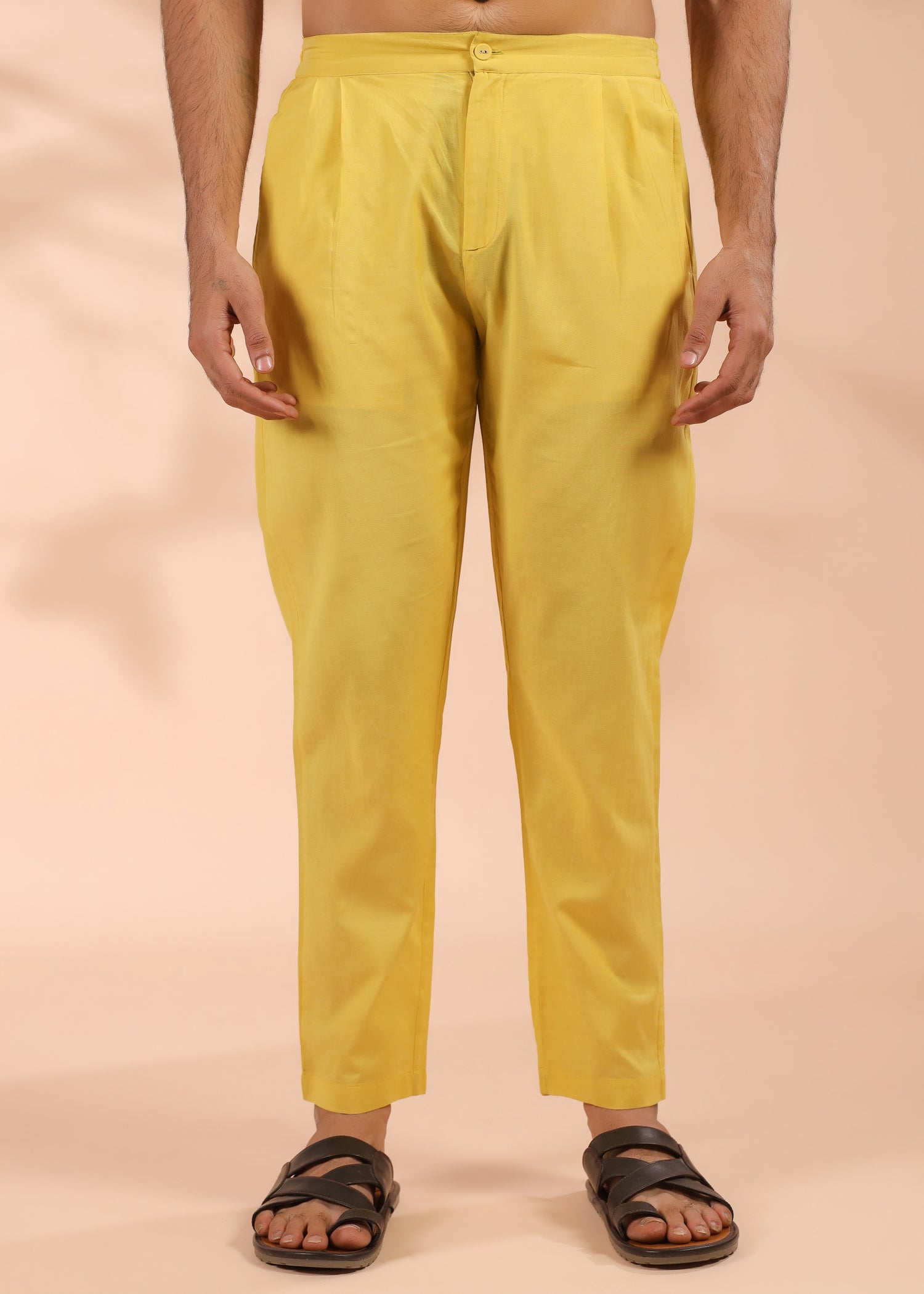 Refresh your wardrobe with this stylish men’s viscose straight-fit pant in a vibrant yellow shade from Ratan Jaipur. Made from soft, breathable viscose fabric, it offers a smooth drape and all-day comfort. The relaxed straight silhouette makes it perfect for festive occasions, casual outings, or everyday wear. Its lightweight feel pairs beautifully with printed kurtas, solid shirts, or contemporary ethnic tops, giving you a bright and effortless look.