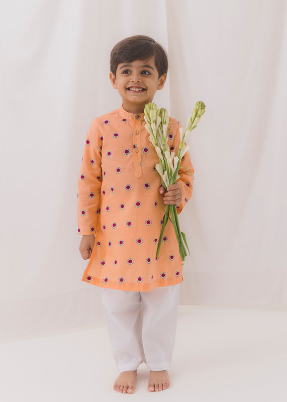 TBS Bindi Cotton Dobby Kurta-Peach (6 Month to 14 Year)