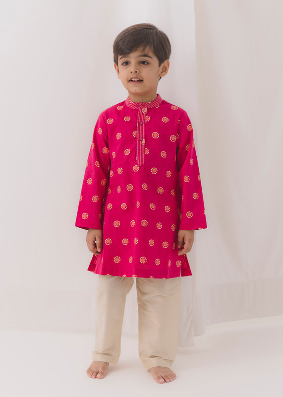Festive and playful, this printed cotton kurta for boys is designed for all-day comfort while keeping the traditional charm alive. Perfect for small celebrations, family get-togethers, or festive occasions.